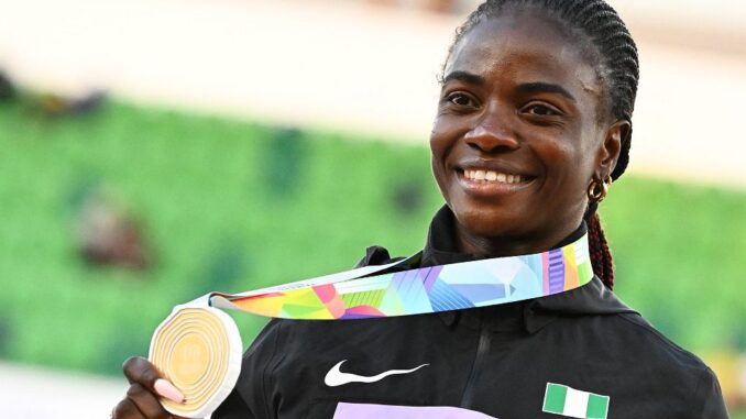 - the first Nigerian athlete to win a gold medal at the World Athletics Championships